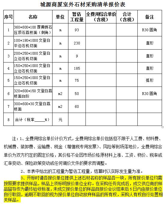 (5)采購范圍:城源商廈室外石材的采購、運輸、裝卸等相關(guān)工作,具體內(nèi)容詳見采購文件。